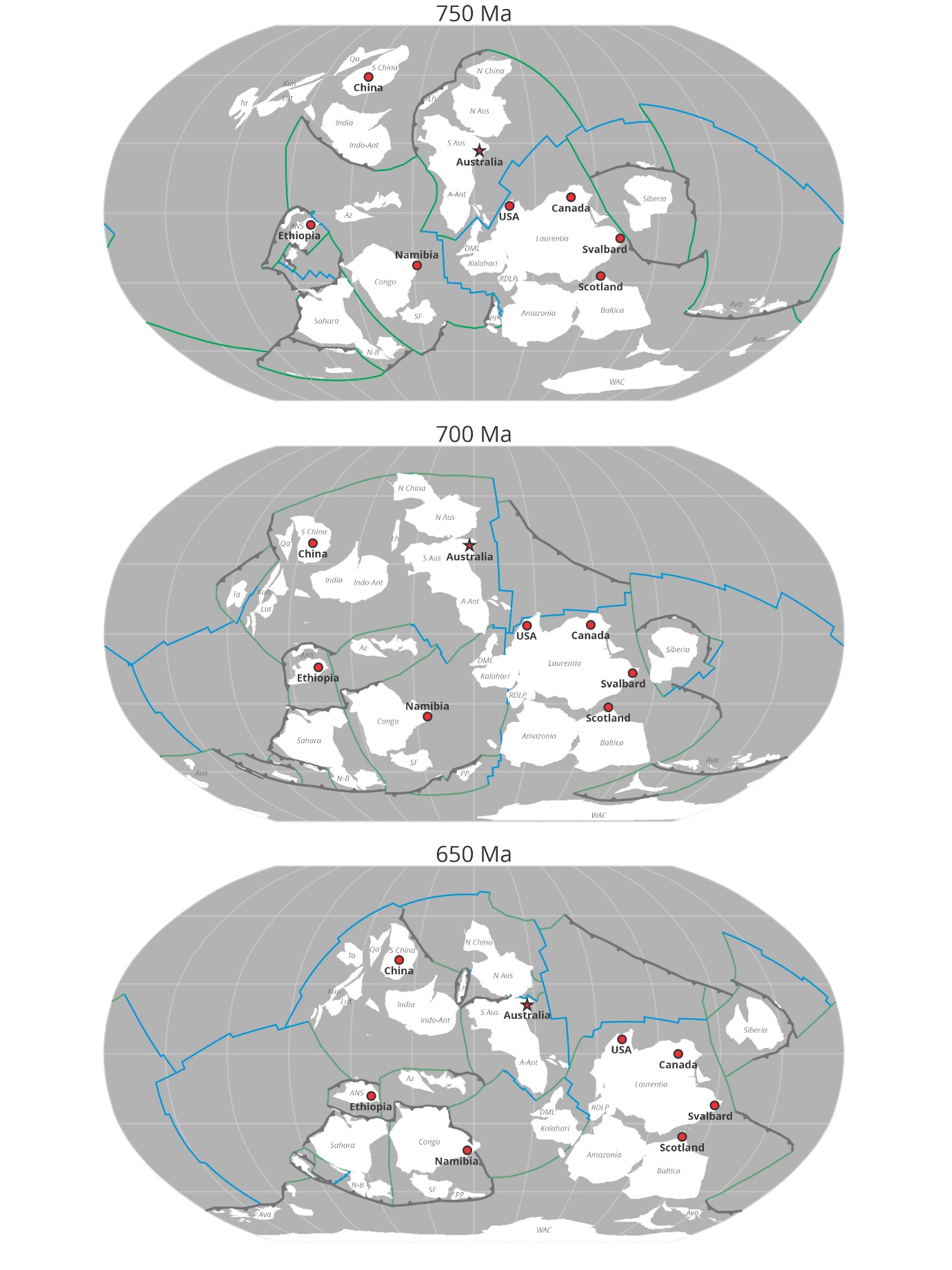 Merdith, A. S., Collins, A. S., Williams, S. E., Pisarevsky, S., Foden, J. D., Archibald, D. B., Blades, M. L., Alessio, B. L., Armistead, S., Plavsa, D. & Clark, C. (2017). A full-plate global reconstruction of the Neoproterozoic. Gondwana Research 50: 84-134. https://doi.org/10.1016/j.gr.2017.04.001