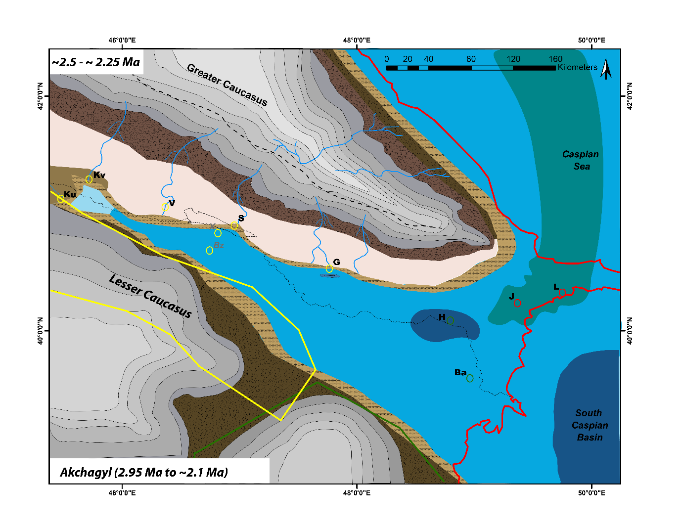 The Olduvai chron is present in lower to mid-Apsheronian deposits found in Lokbatan, Jeirankechmez, Hajigabul, Gӧychay, and Xocashen. During the Olduvai chron, the KB experienced lateral changes in depositional environments along strike.