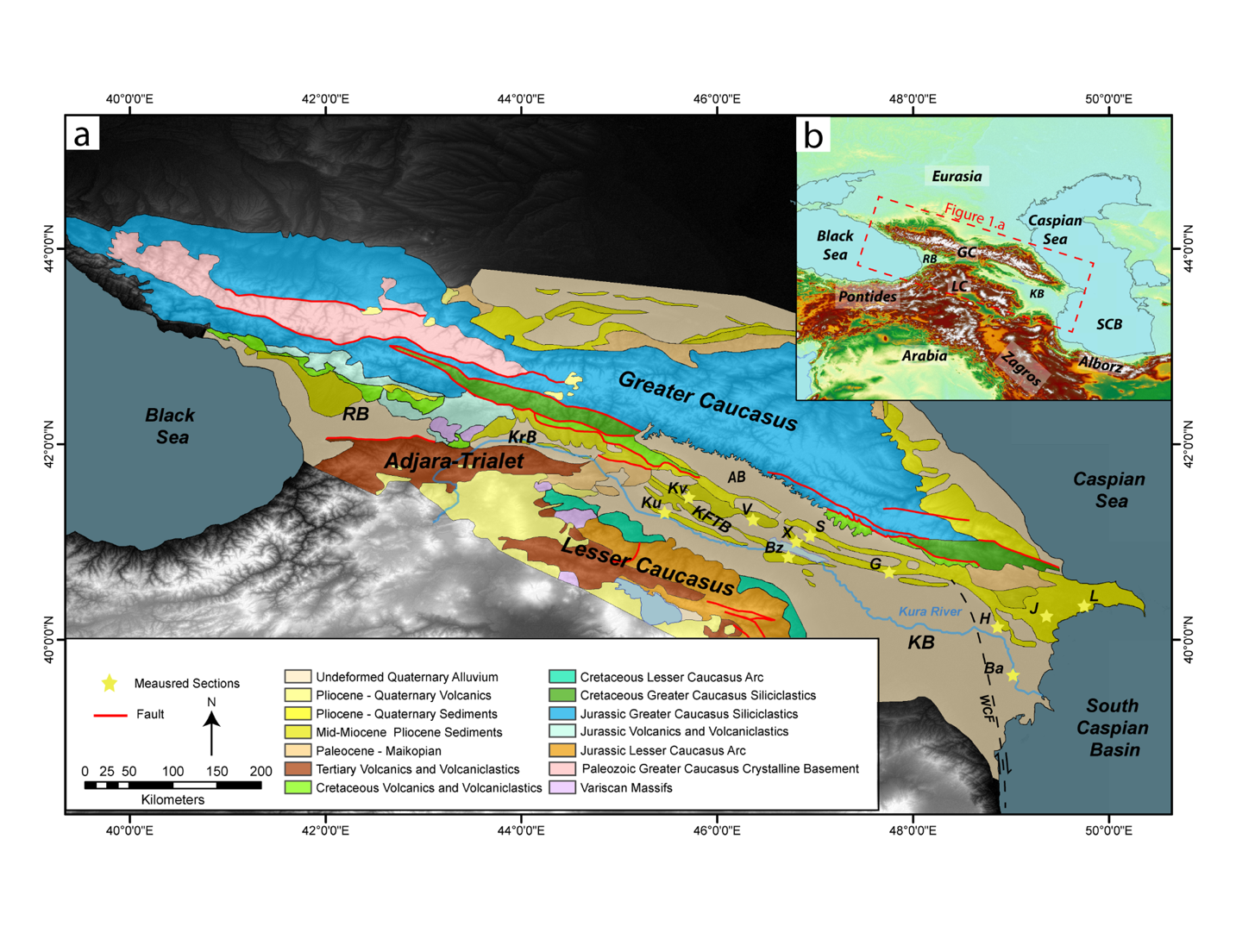 Mosar, J., Kangarli, T., Bochud, M., Glasmacher, U. A., Rast, A., Brunet, M.-F., & Sosson, M. (2010). Cenozoic-Recent tectonics and uplift in the Greater Caucasus: A perspective from Azerbaijan. Geological Society, London, Special Publications, 340(1), 261–280. https://doi.org/10.1144/SP340.12